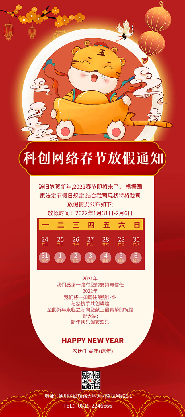 2022春節放假通知